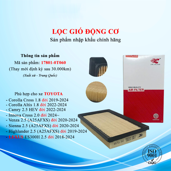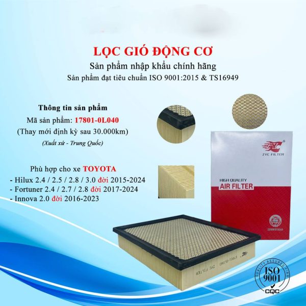 Lọc ô tô chính hãng thương hiệu ZYC FILTER
