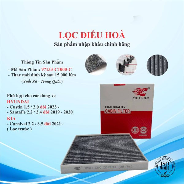 Lọc điều hòa than hoạt tính HYUNDAI Custin 2023~ , SantaFe 2019-2020 và lọc trước KIA Carnival 2021~ (Mã: 97133-C1000-C)