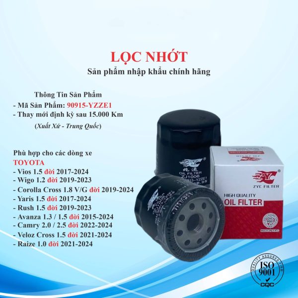 Lọc nhớt Toyota Vios, Yaris, Cross, Veloz, Rush. Avanza. Raize (Mã: 90915-YZZE1)