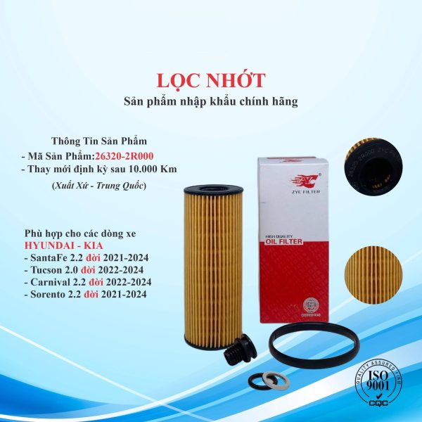Lọc nhớt (máy dầu) xe KIA Carnival, Sorento – HYUNDAI Santafe, Tucson đời 2022~ (Mã: 26320-2R000)