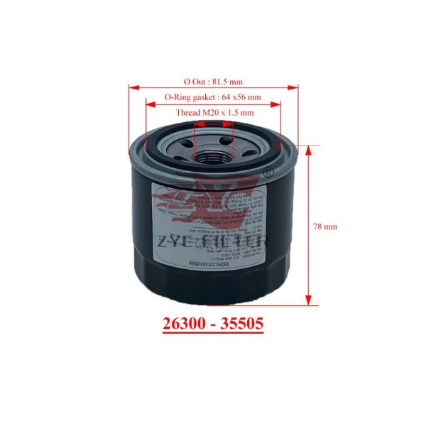 Lọc nhớt HYUNDAI Elantra, Kona, SantaFe, Creta, Stargazers, Accent 2024, Tucson, Avante – KIA New K3, Cerato, K5, Seltos, Sorento, Optima (Mã: 26300-35505)